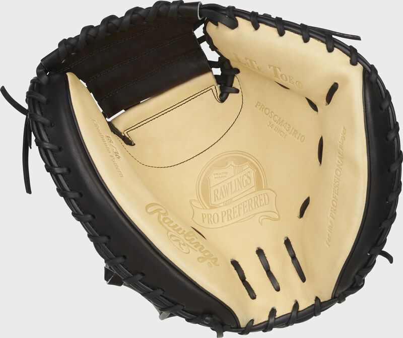 The J.T. Realmuto Pro Preferred 34-Inch catcher's mitt was masterfully created from supple, full-grain kip leather. As a result, this ultra-luxurious leather gives you unrivaled performance and feel. Gold Glover J.T. Realmuto has became arguably the best catcher in the game, and he trusts this as his gamer. Its 34-inch CM43-pattern gives him a wide, deep pocket to help him frame pitches perfectly on the corner.