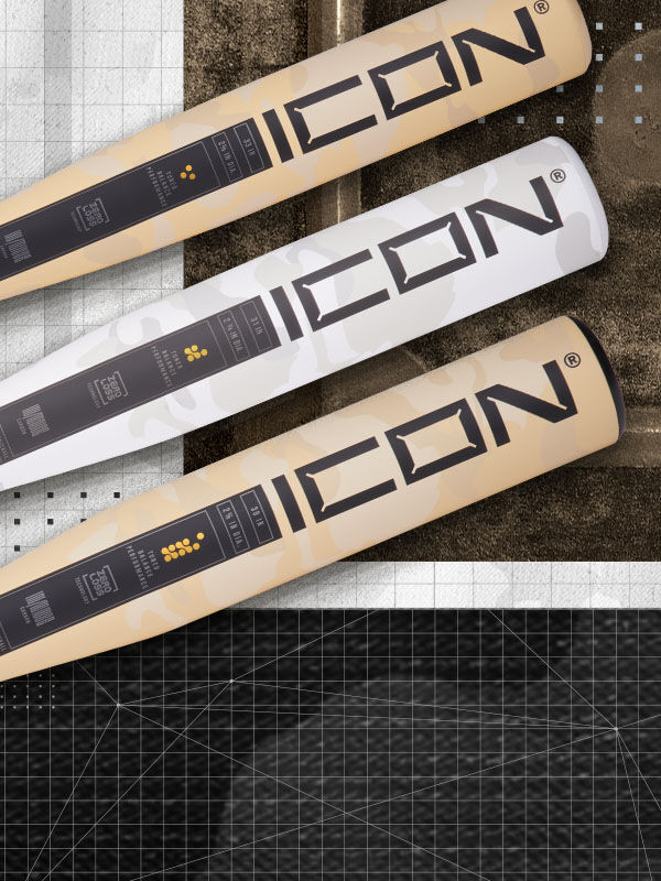 On top of that, the optimized and perfected Zero-Loss collar delivers a seamless energy transfer through your swing and stabilizes the bat on mishits, so you can still slug for extra bases even when you don't get your A+ swing off. And of course, this year's Icon comes in a breathtaking sand camo design that will drop jaws as soon as you step into the on-deck circle.