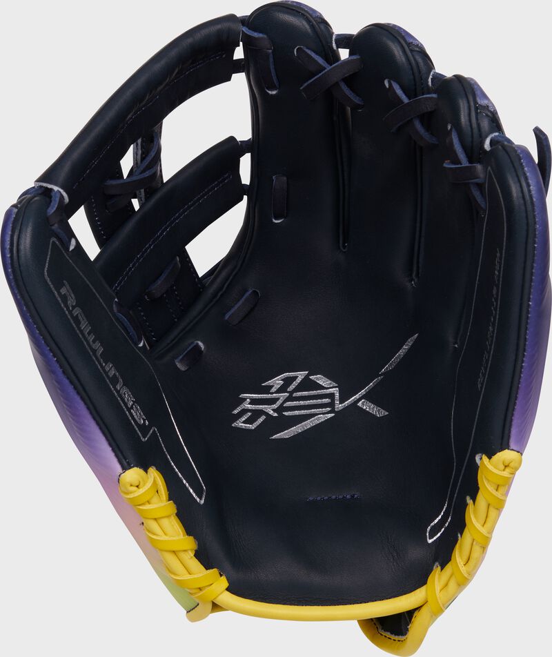 Run the infield with this exclusive Francisco Lindor REV1X 11.75-inch infield glove! Featuring an eye-catching gradual color transition on the shellback, this ultra-rare REV1X has a serene design, perfect for gaming it or displaying it as a collectible. In addition, the palm shell features ultra-premium Heart of the Hide black leather, matching your strong and commanding presence on the field.